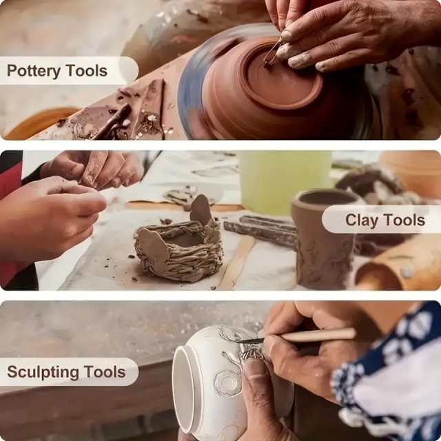 Set modelirki sastoji se od 11 komada u setu, napravljenih u kombinaciji drvo - metal, biti će korisne alatke ne samo u radu s glinom, već i kod raznih drugih tehnika. Dužina pojedinačnih alatki varira, ali je prosjek dužine pojedine alatke cca 15cm. S obzirom da su modelirke dvostrane, stvarni broj alatki u setu je 22 komada. Ovaj set zadovoljava sve osnovne potrebe za alatima u radu sa glinom.