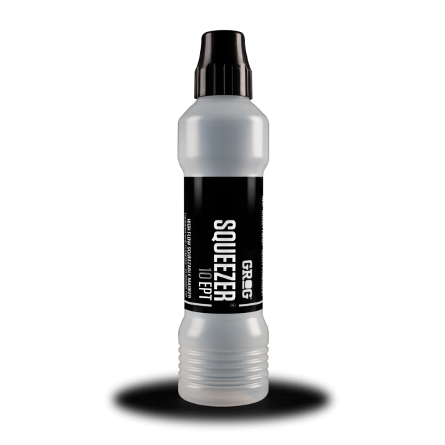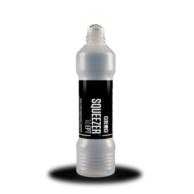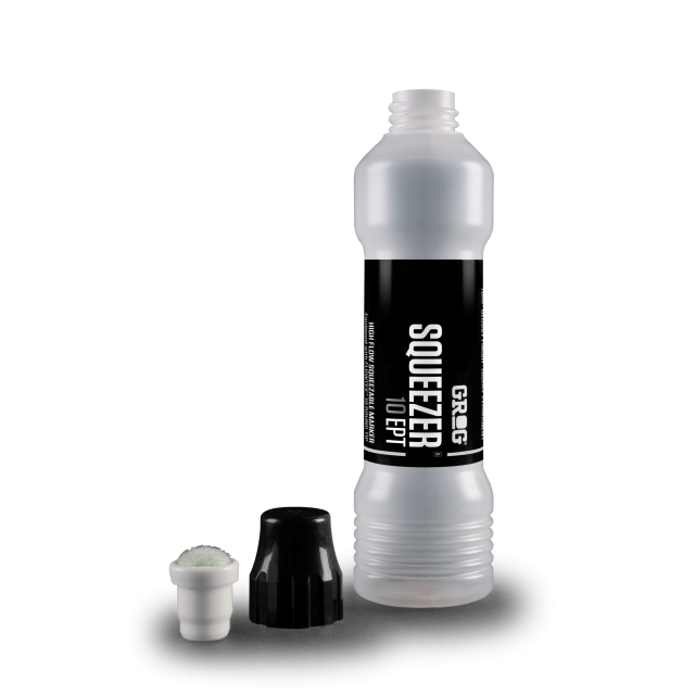 Grog Squeezer 10 empty version. Equipped with a 10 mm textile fabric Flowtex Round Tip, Squeezer 10 EPT is the ideal tool to be filled with 70 ml of Grog Buff Proof Ink, Grog Full Metal Paint or your favourite ink.