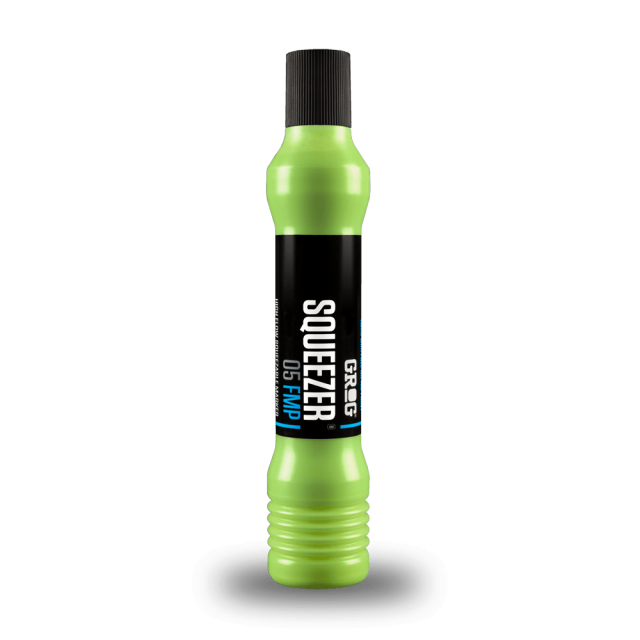 Squeezer 05 FMP is the compact version of the almost legendary Squeezer 10 FMP. Equipped with a Flowtex 05 tip, it's the right marker for writing on the smallest surfaces, where you can't usually dare. Like the other Squeezer models, the reservoir is made of soft plastic, so you can squeeze it as much as possible to calibrate the ink flow as you like. Filled with 45 ml of Full Metal Paint, Squeezer 05 FMP is easily refillable with the useful Grog Refiller and it has an antidrip edge, for writing without any mess, and a secure sealing closure cap.