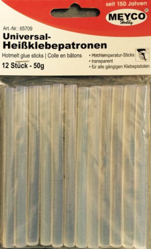 Patrone za vruće lijepljenje za mini pištolj. Koristi se za hobi, dekoriranje, aranžiranje i lijepljenje svih materijala. U pakiranju je 12 patrona dužine 10cm.