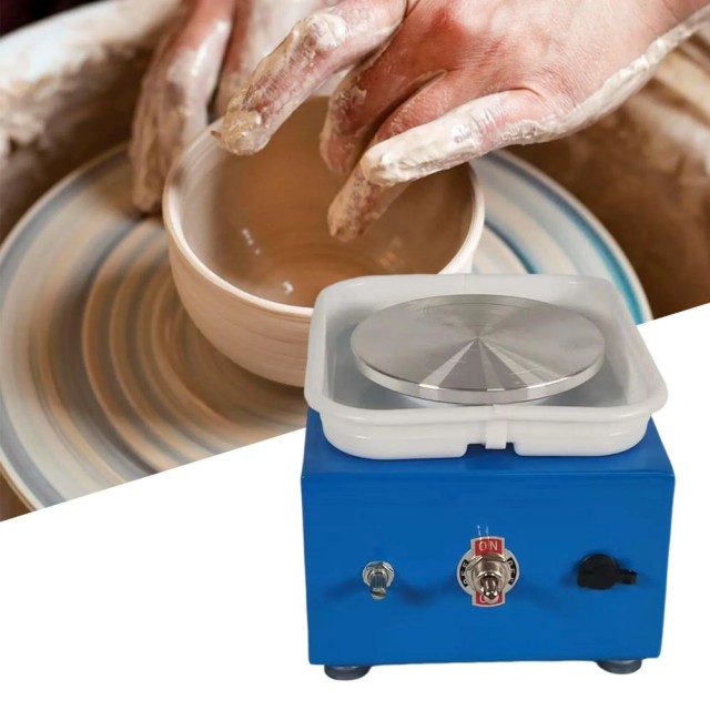 Savršeno dizajniran za izradu finih, detaljnih keramičkih komada s preciznošću. Mini električno lončarsko kolo s dvije rotirajuće ploče (6,5 cm i 10 cm), snage 30 W, idealan za male komade keramike i gline.