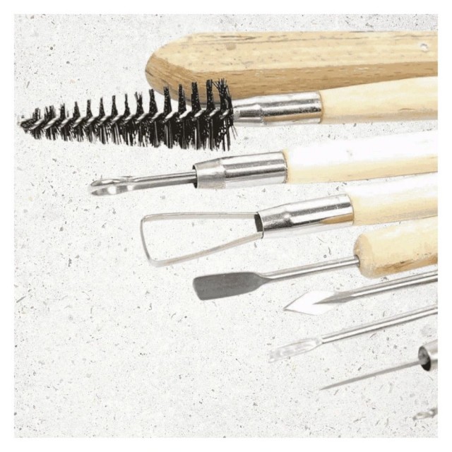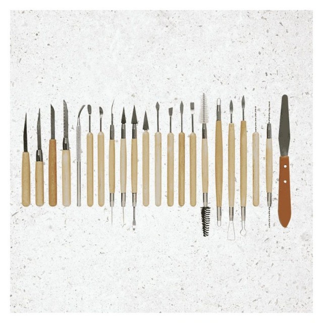 Profesionalni set od 22 alata za kiparstvo i modeliranje, koji se mogu smatrati neophodnim u kiparskom ili lončarskom studiju. Ovaj set je izuzetan za rezbarenje, oblikovanje, modeliranje, rezanje, struganje, četkanje, glačanje itd.