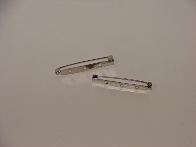 Metalna komponenta za izradu broša, dimenzija 35x6mm, srebrne - nikal boje, sa tri rupice na plohi podloška.