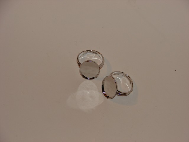 Prsten kao repromaterijal za izradu nakita - prstena. Metalna baza koja se može podešavati, prilagođavati razlićitim prstima. Ova baza idealna je za lijepljenje jednog većeg kamena ili više malih perli. S obzirom na omeđenu gornju, radnu površinu, može se koristiti i kristalna smola.