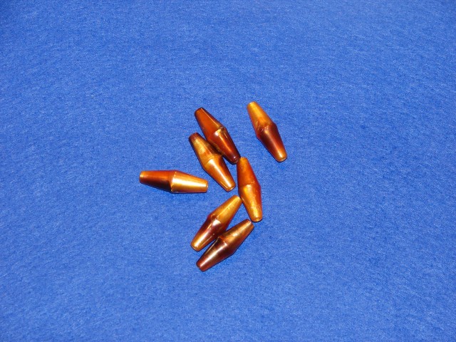 Plastične perle duguljasta oblika, jantarne boje, 2.50cm dugačke.