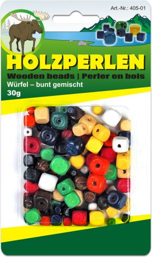 Drvene četvrtaste perle. U pakiranju je 30g u raznim bojama i veličinama.