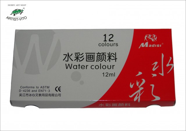 Madisi akvarel (vodene) boje su proizvodene od najboljih sirovina. Karakterizira ih postojanost finih čestica, veoma su svijetle, čistoća nijansi, snaga boja, visok stupanj prozirnosti, fina propusnost, čistoća, nježnost, otpornost na sunce te minimalna razlika između mokre i osušene boje. Zbog svoje kvalitete i cijene, zadovoljavaju potrebe slikara sa iskustvom, početnika, studenata i đaka. Ove akvarel boje zadovoljavaju ASTM D-4236 i EN71 - 39 standarde. Proizvođač je ponosni nosioc certifikata ISO9001 te ISO14001.