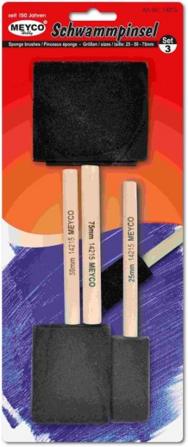 Set od tri spužvasta kista, drvene drške, promjera 25mm, 50mm i 75mm. Namjenjeni su oslikavanju i dekoraciji sa svim vrstama boja.
