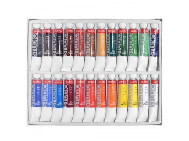 Set akrilnih boja u tubama, čiji se sastav temelji na visokokvalitetnim pigmentima. Vrlo su fino samljeveni kako bi se dobila iznimno glatka konzistencija. Sve nijanse boja su vrlo otporne na svjetlo i ne blijede. Također imaju visok stupanj neprozirnosti i gustoće koji osigurava glatke poteze kistom i pravu teksturu. Uz njihovu pomoć možete slikati male, precizne detalje, kao i pokriti velike površine platna. Ove akrilne boje su pogodne za početnike kao i za profesionalce.