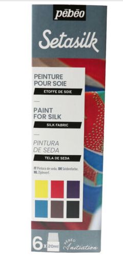 Set boja za svilu Pebeo, mogu se međusobno miješati kako bi se postigli željeni tonovi. Nakon fiksiranja 5 minuta glačalom, boje su otporne na pranje. Pogodna za sve tehnike slikanja na svili. Sjajne, intenzivne boje, lijepo se razlijevaju po svili.